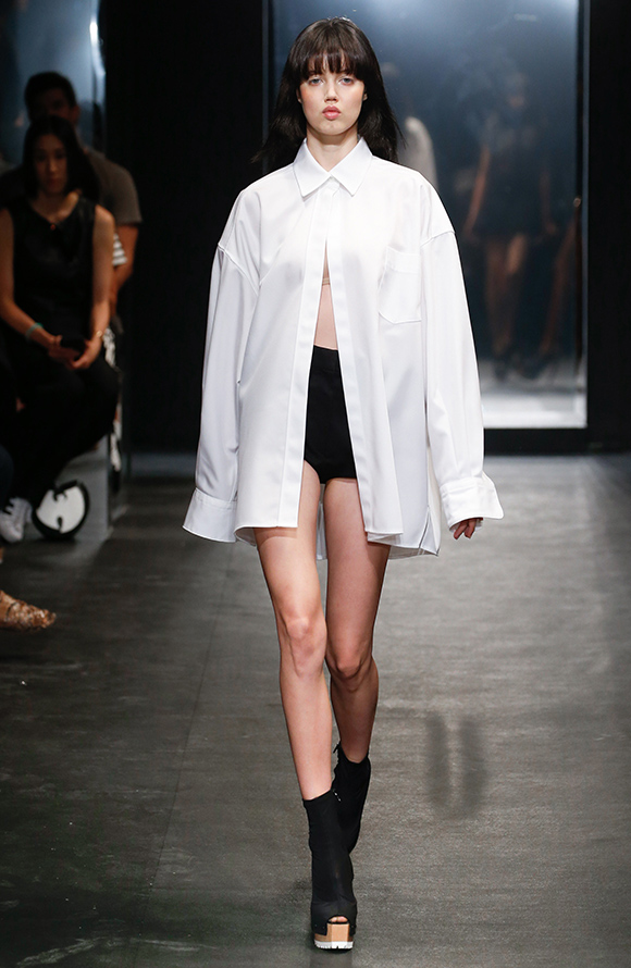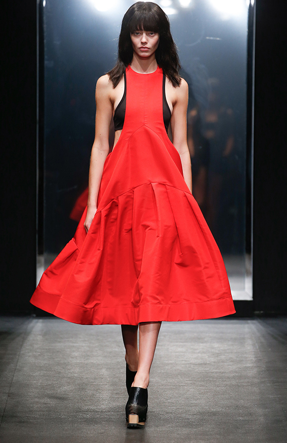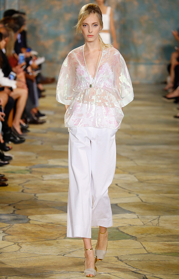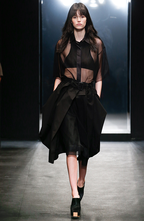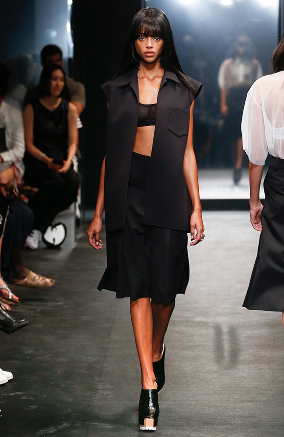 在这个秀场上,走得是模特们的层次感颓废刘海、透视装、运动抹胸加百褶裙——这种既乖巧又寻求刺激的都市女孩模样,相当地Vera Wang。