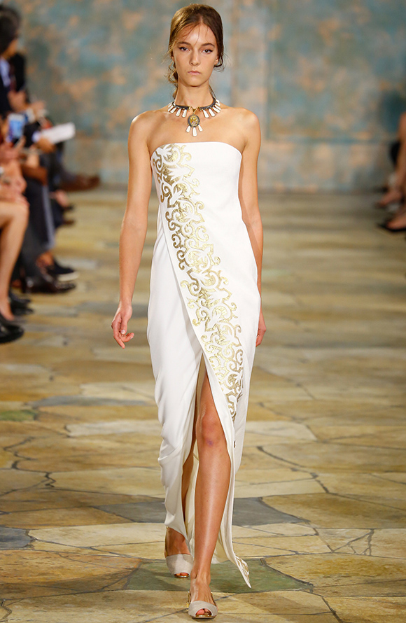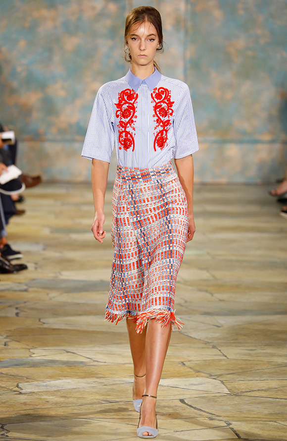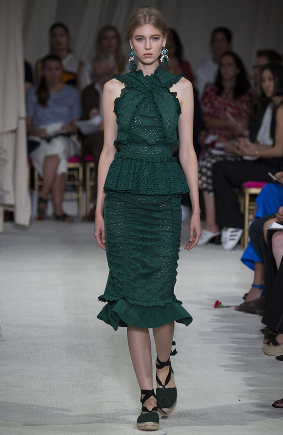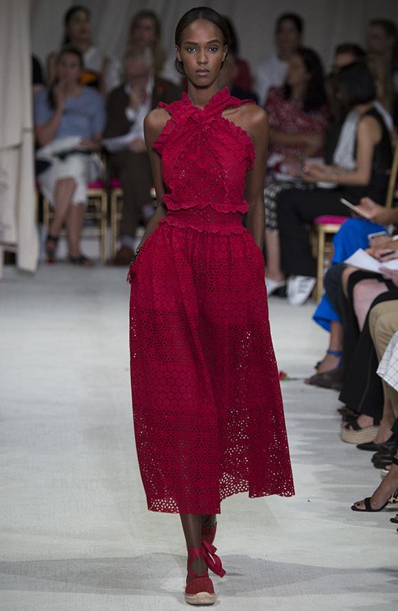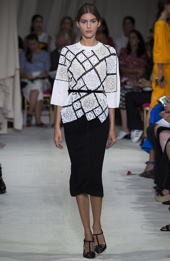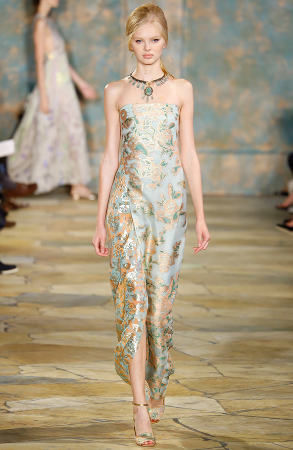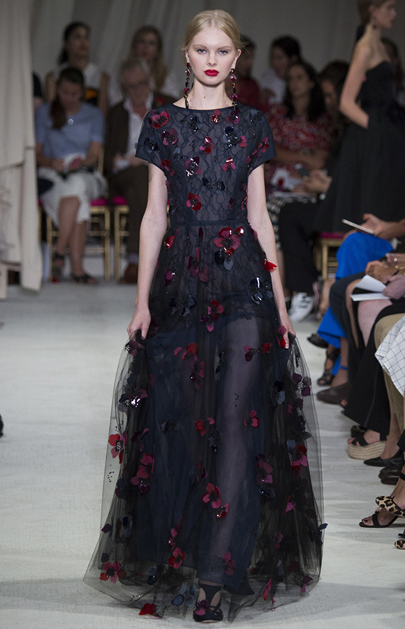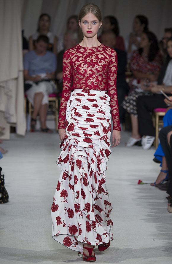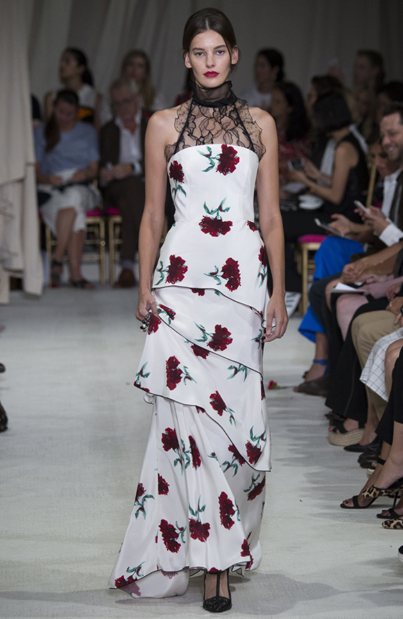 继承者可不好当,在首秀得到好评之后,Peter Copping似乎压力更大,在这场发布会上展出了多件混合西班牙风格和拉丁印花的裙装,华丽还是那样,不过已经比2015秋冬多了些个人的色彩。