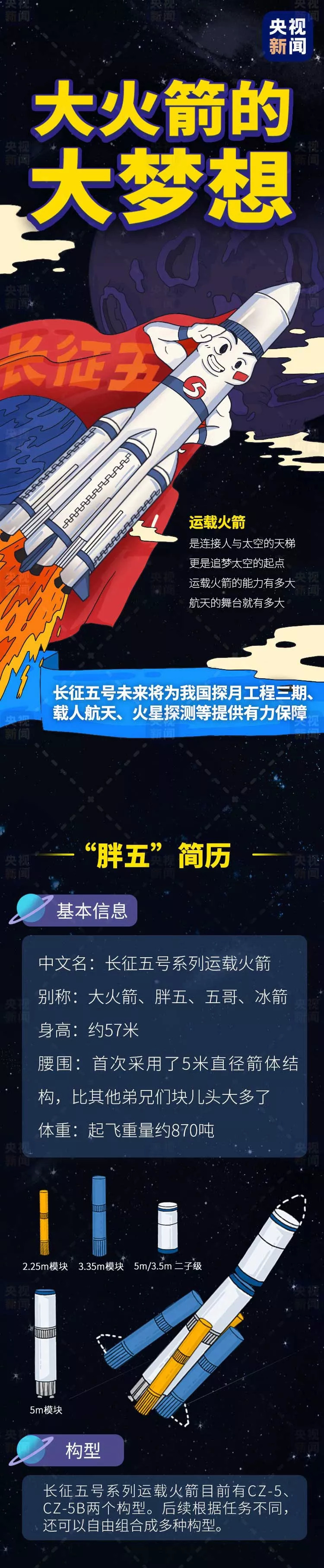 作为我国目前运载能力最大的火箭,长征五号肩负着开展载人航天空间站建设、月球采样返回、火星探测等多项重大航天工程任务。此次发射成功,为中国航天的“超级2020”打下了坚实基础。