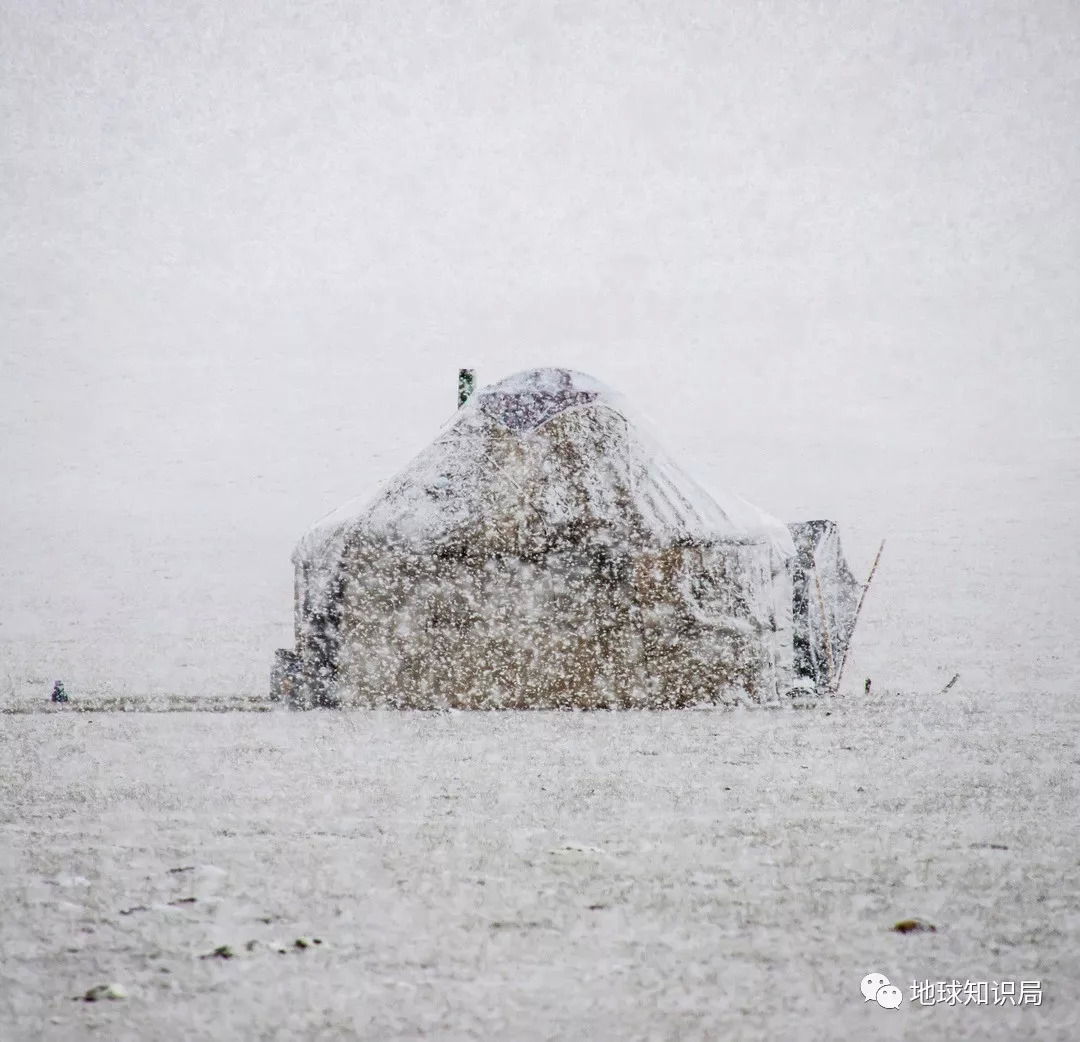 一只正在风雪中经受考验的蒙古包