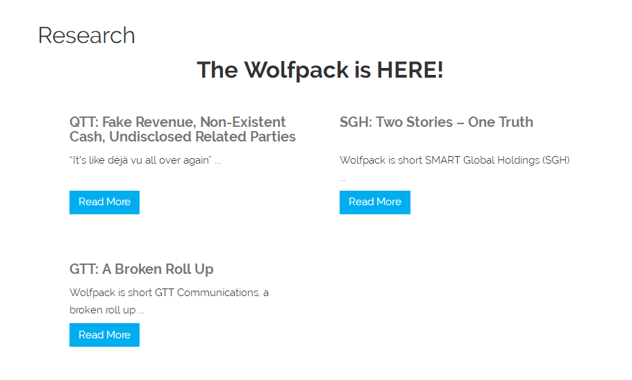 首战失利之后,2019年9月25日,Wolfpack Research又发布了对SGH公司的做空报告。