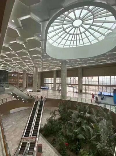 医院装修以暖铜色调为主,在格局上凸显“室内空间室外化”,门诊一层至五层中间都有一条100米长、8米宽的“医疗街”,为绿化景观搭建和艺术品陈设提供了充足空间,病人穿梭其间,绿植葱翠,油画布墙,心情也会更愉悦。