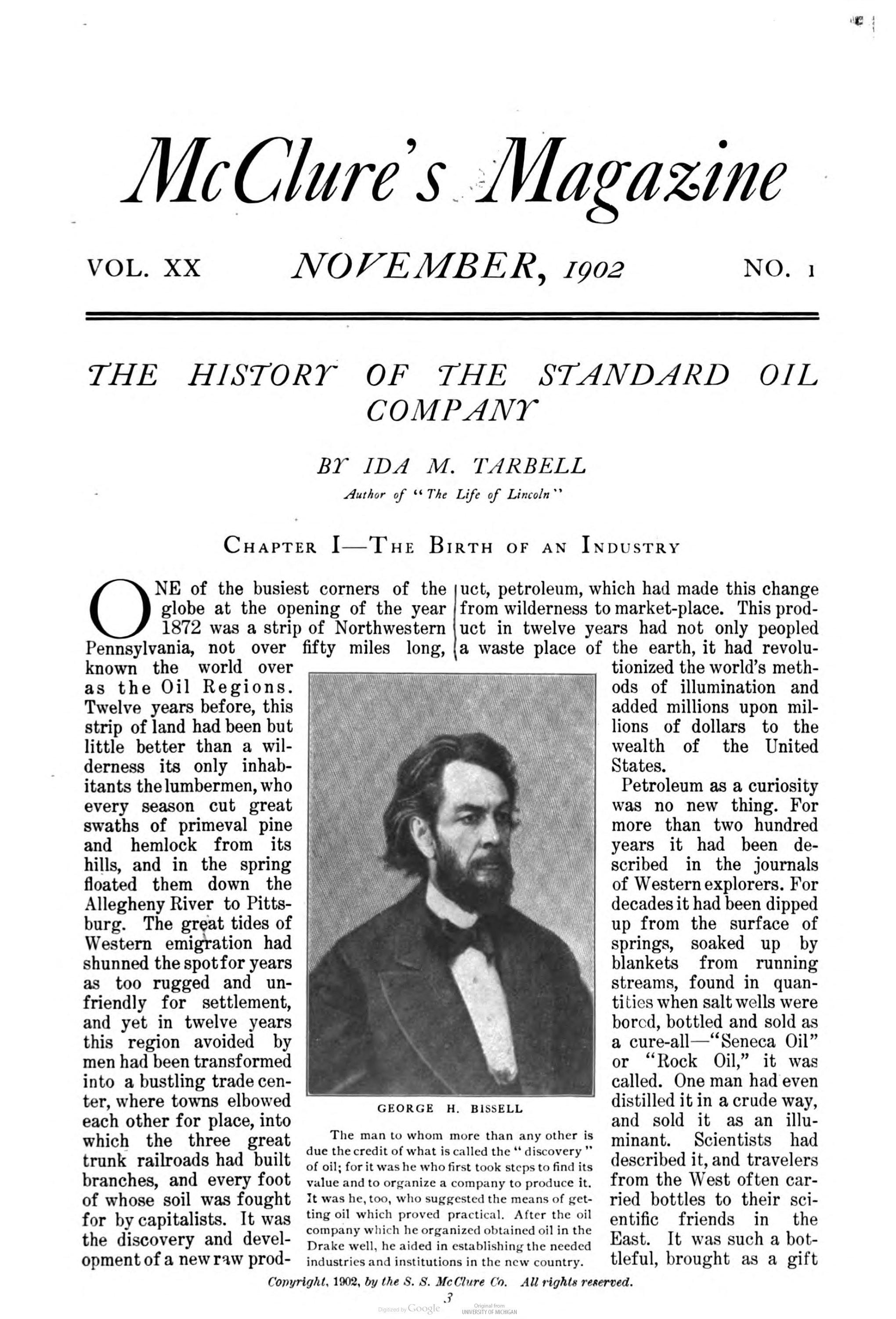 这项事业的关键是麦克卢尔发现了塔贝尔。他们俩有很多共同点,包括“边缘者”的身份(一个是移民,另一个是女性)、好奇心和大学教育(当时很少人受过大学教育)。塔贝尔在宾夕法尼亚州的西北部长大,在那里她看到像她父亲和邻居那样的普通人,如何以独立石油生产商的身份谋生——当洛克菲勒与铁路公司达成一项利益交换的协议时,当地人被迫低价出售资产或破产:火车载运廉价的石油,并高价出售给竞争对手。她写道:“我从骨子里憎恨特权。”