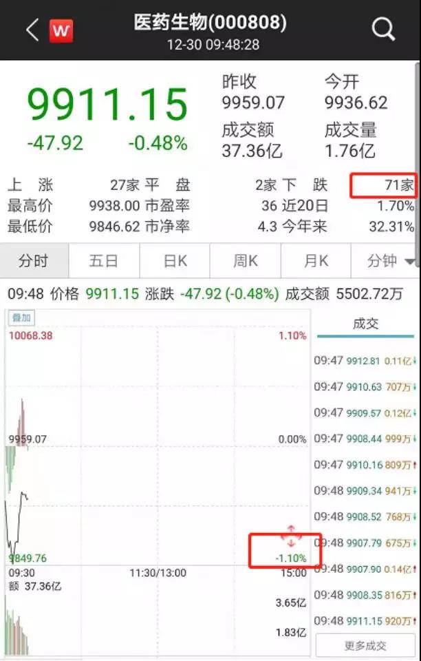12月30日早盘开盘,医药生物指数低开低走,开盘不到半小时,指数跌幅就扩大至1%左右,不过随后开始出现了跌幅收窄的情况。