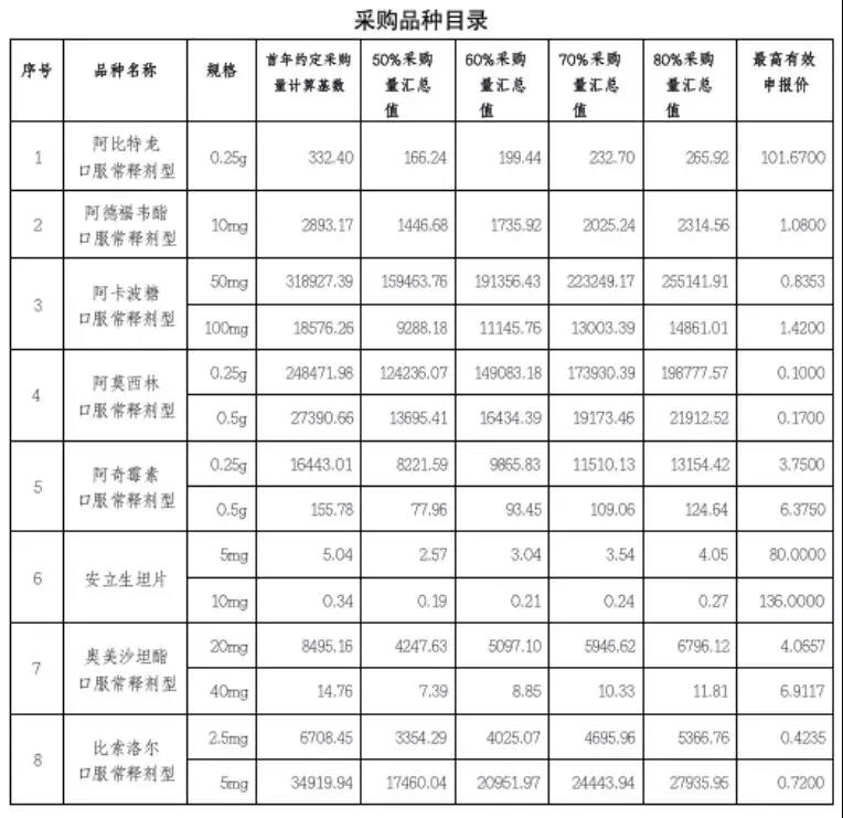 33个品种入围采购目录