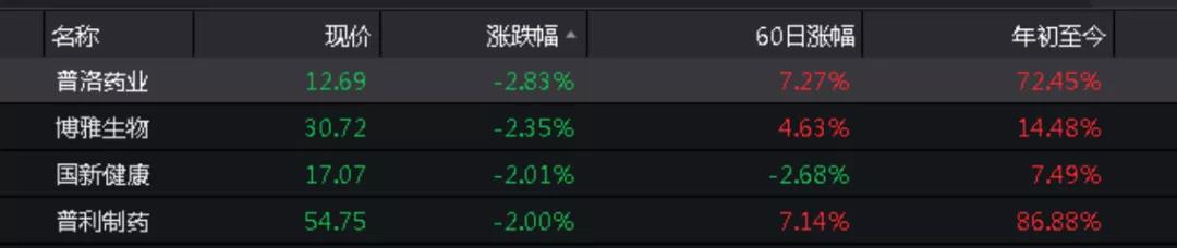 而从板块内部来看,多只医药生物个股也出现了明显下跌的情况,其中洛普药业、博雅生物、国新健康等跌幅超2%。