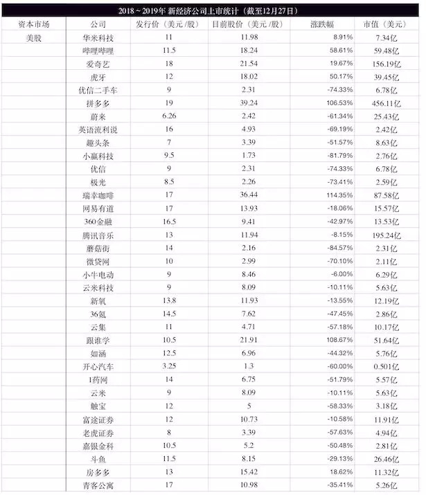 这已经成为一个普遍的现象,据投中网统计,2018年赴美股、港股上市的新经济公司共57家,其中42家跌破发行价。