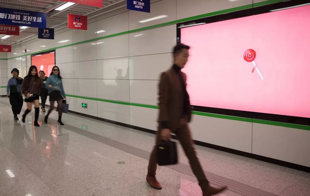 有点文艺又带点神秘,作为一个在沿途三十多站、重复了七十多次的广告,很显然,它在试图引发你的好奇。谜底在厦门地铁的海沧湾公园站揭开——这里有24张不同的壁纸制作成的地铁广告牌。