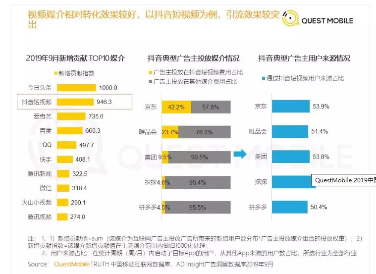 同时,也有一部分流量转移至视频内容:根据 Questmobile 测算,中国移动互联网的短视频信息流广告市场均将保持高速增长,视频媒介转化效果较好。