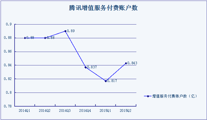 根据腾讯财报,2014年以来腾讯增值服务付费账户数稳定在0.82亿至0.89亿之间,似乎已缺乏继续上升的潜力。