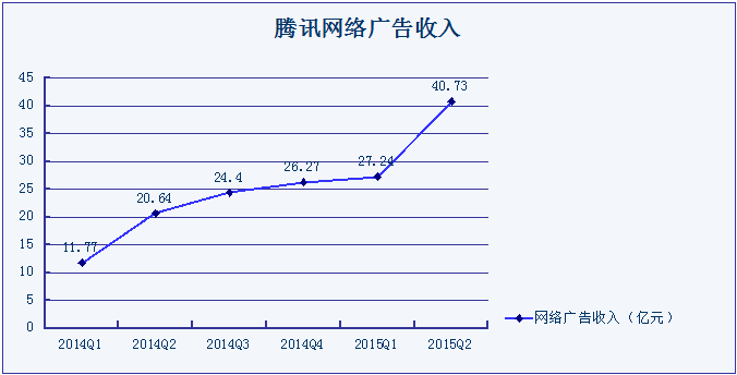 再看腾讯的网络广告收入,自去年以来一直快速增长,主要是QQ空间和微信朋友圈上线信息流广告所致。