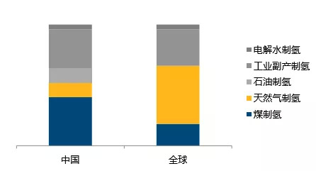 图1 中国与全球当前制氢方式构成(来源:中国石化)