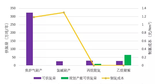 氢的储运技术与终端用氢成本密切相关。数据显示,我国氢气产能达2500万吨,是制氢大国,据统计,已投产和在建的工业副产项目氢供应规模可达400万吨以上,初期示范应用成本较低廉的氢源相对容易解决,但当前技术水平下氢的中远距离储运大幅增加氢终端售价,不利于终端氢能应用领域的培育和发展。