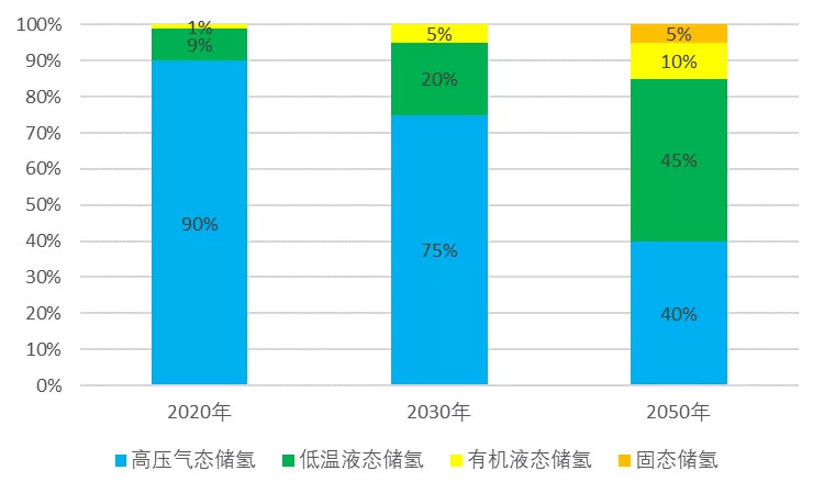 根据中国石油勘探开发研究院的预测,2050年液氢将占所有储氢方式的45%。