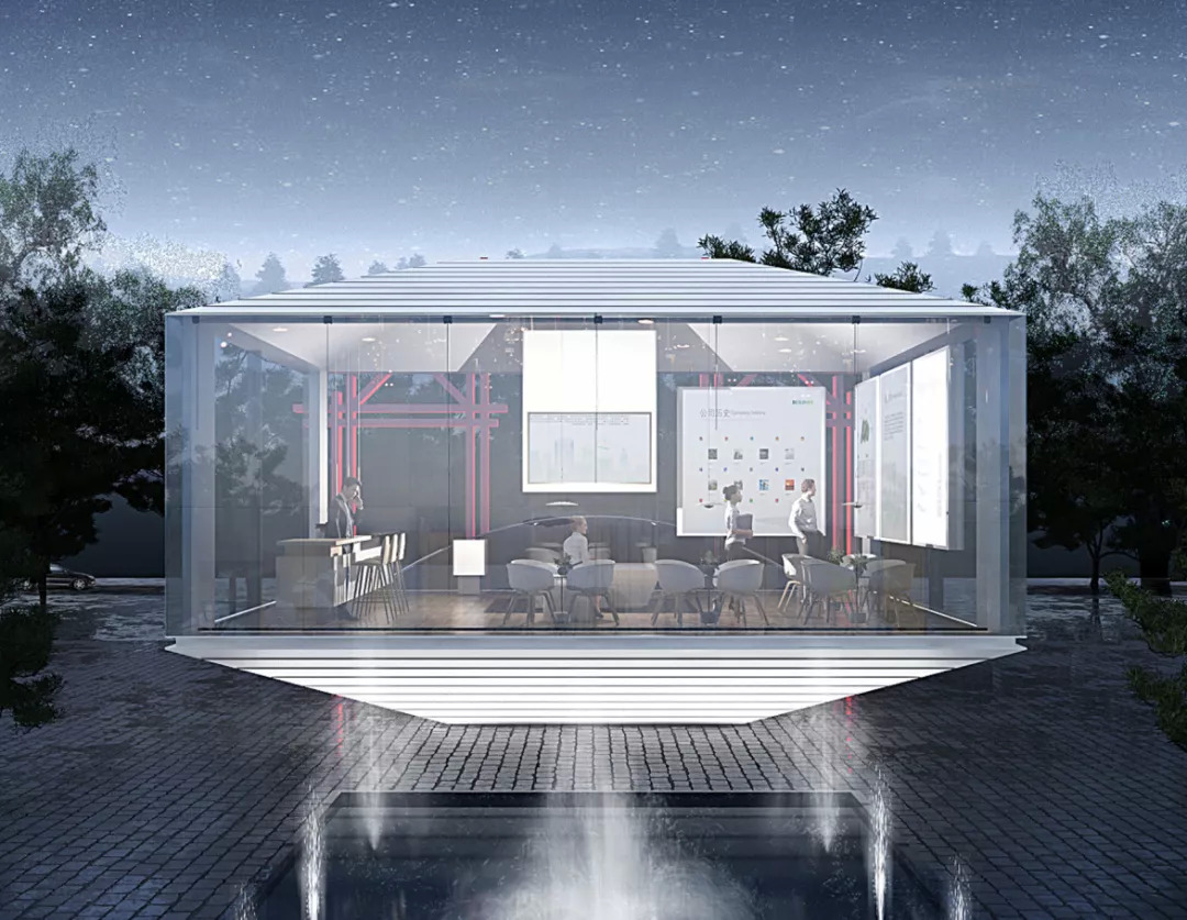 尊重周围的一切,以玻璃构造将充满诗意的创新带入,外观简洁明净,高雅别致,也使得建筑视野开阔。同时,城市展厅将建筑美学、建筑功能、建筑节能和建筑结构等因素有机地统一起来,从不同角度呈现出不同的色调,随阳光、月色、灯光的变化给人以动态的美。