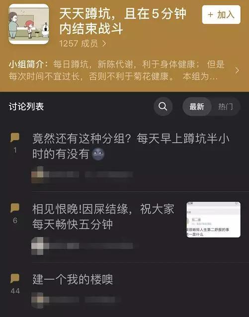 提肛小组的兄弟小组,应该就是这个蹲坑小组了,你可能想不到,人是可以因屎结缘的!