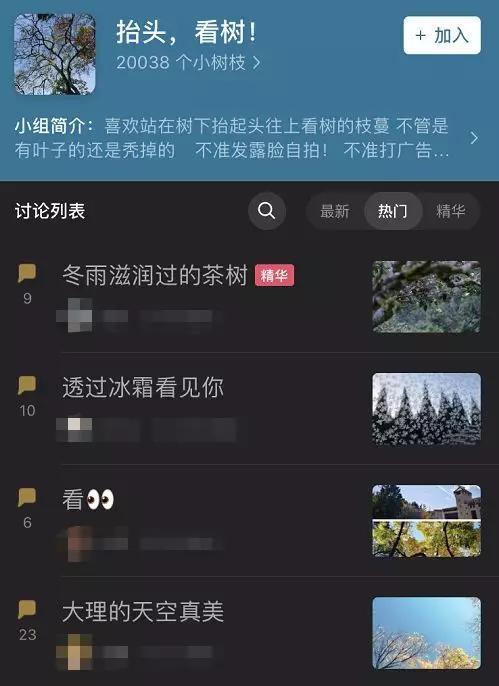 比如这个名为 “ 抬头,看树! ” 的小组,听上去就很文艺。
