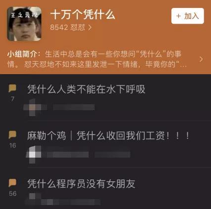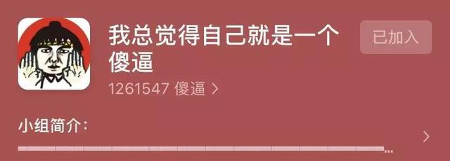 而对于很多人而言,下面这个小组的组名,应该是他们每天都在对自己说的一句话“ 我总觉得自己就是一个傻逼 ”。。。