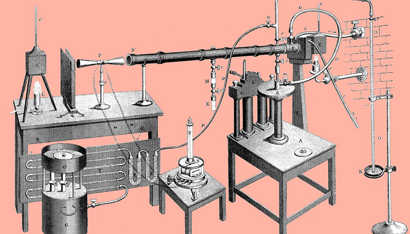与富特的境遇相反,气候科学研究方面的聚光灯很快就集中在了爱尔兰科学家约翰·廷德尔的身上。廷德尔的研究领域广泛,而且他擅长制造各种精密的实验设备(也善于用科学实验回击当时社会流行的降神或与亡灵通话等做法)。同时,他也着迷于维多利亚时代科学界十分重要的一个研究议题,即究竟是什么导致了地球冰河世纪的出现?地质学家一直在寻找这方面的相关证据,以证明在过去的不同时期里,地球曾被大量冰川覆盖。这是一项令人兴奋的发现,但是科学家并不清楚地球的温度为何会出现如此剧烈的波动。