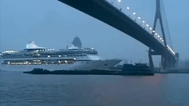 但实际上,“海洋神话号”的登陆并非一帆风顺,它更像是一次盟军诺曼底登陆的“霸王行动”。由于黄浦江每天有两次涨潮和落潮,两次涨落潮间隔 12 个小时,潮差 3 米,因此“海洋神话号”必须算好时间,控制航速,在5个滩头选择不同的高潮与低潮间登陆才行。