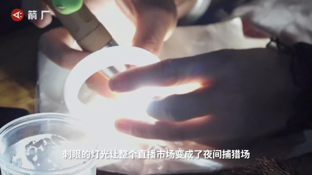 我感觉这一切更像是狩猎。在那些强手电、白光灯的照射下,粉丝像夜间短暂盲视的猎物,也像没有领头的鱼群,而主播体内的鸡血和热情,是抓到猎物般的高涨荷尔蒙。