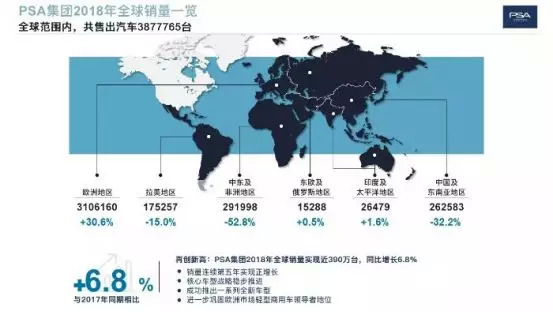 2018年,PSA全球销量达到388万辆,同比增长6.8%,净利润也达到32.95亿欧元,同比大增40.4%。同期,中国市场的销量却仅为26.2万辆,同比下降32%。