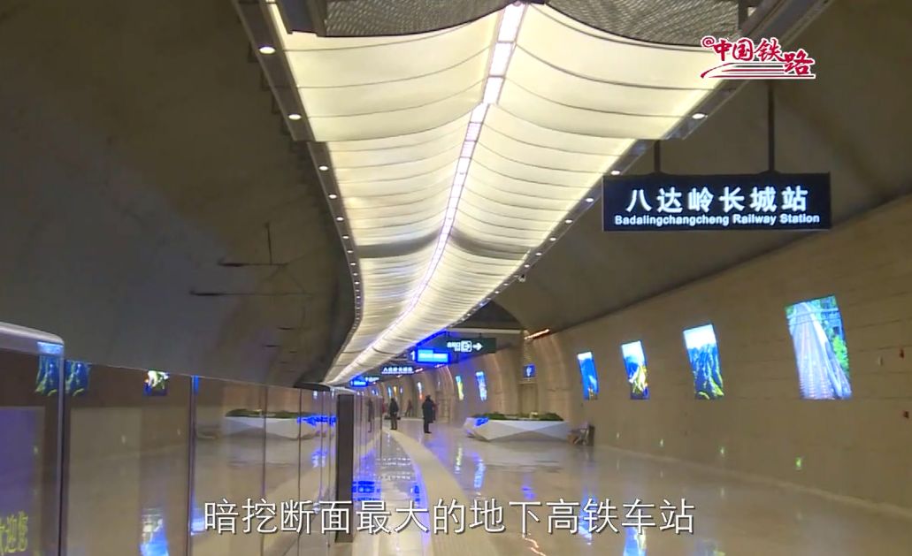 八达岭长城站,是世界上埋置最深、洞室群最集中、暗挖断面最大的地下高铁车站。像外科手术一样的微震微损伤精准爆破,超大跨度隧道修建技术应用,300年耐久性结构体系设计,让古老雄伟的长城与现代智能的高铁在此交相辉映。
