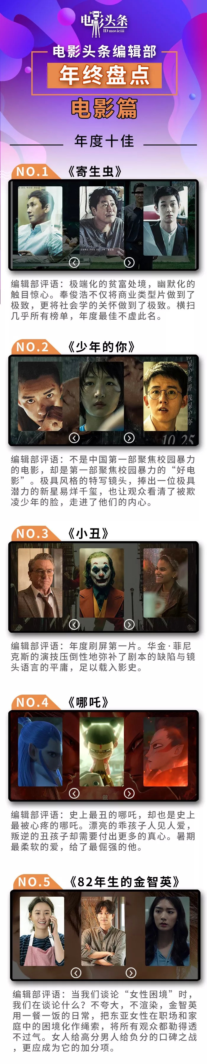 这一年里,我们被《寄生虫》精妙的社会隐喻震撼,为华金·菲尼克斯的表演献上了集体喝彩,为《少年的你》中校园欺凌下互相守护的少年流下了热泪。
