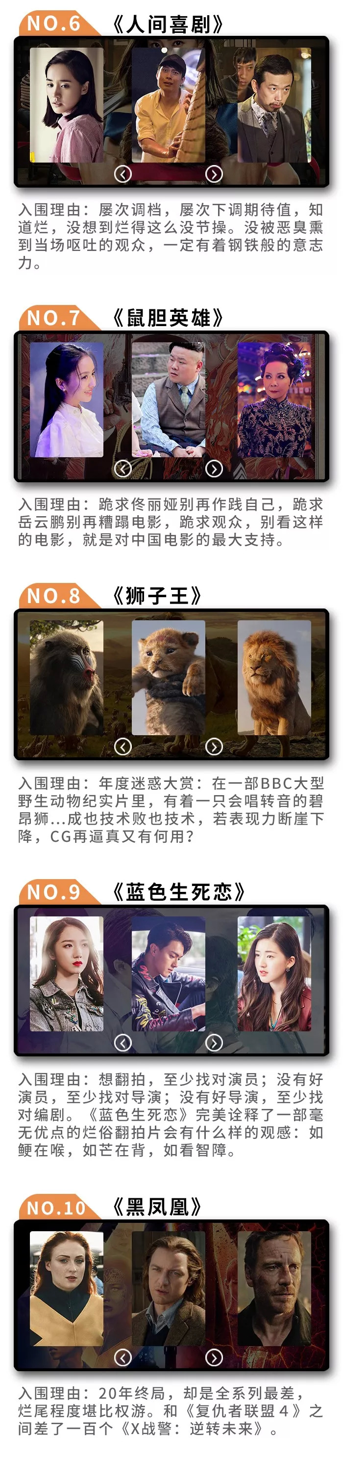 我们也为大家提名了年度最不可原谅的十部烂片。
