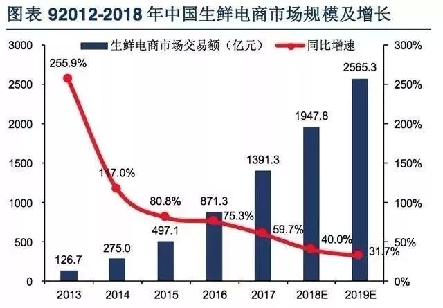 此后两年里,生鲜交易确也不负众望,规模一直翻倍速增长:2013年国内生鲜电商市场交易额130.2亿元,同比增长221.5%,2014年仍有125.8%的增速。