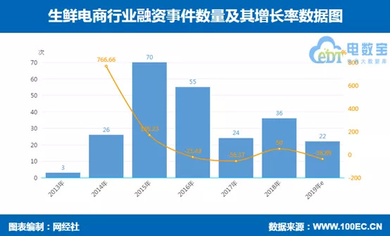 也正是这一年,生鲜领域的融资事件创下历史新高,达到惊人的70次,融资金额更是从2013年的1.3亿元上涨至101.6亿元。