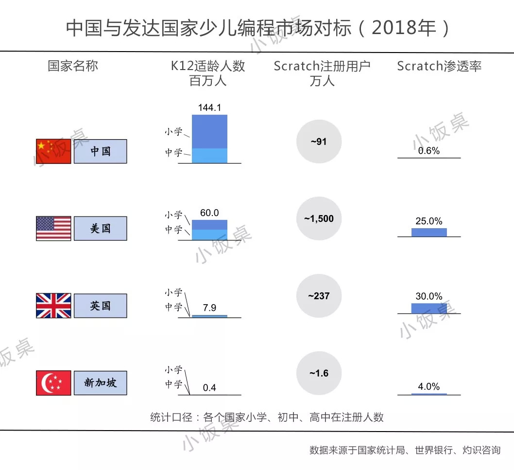 资本最先嗅到机会入场。2017年少儿编程赛道共有24个项目获得融资,这一数字到2018年增加至47个。投资人的逻辑主要是类比欧美国家20%的渗透率,按照中国约1亿小学生来计算,少儿编程会成长为千亿级市场。