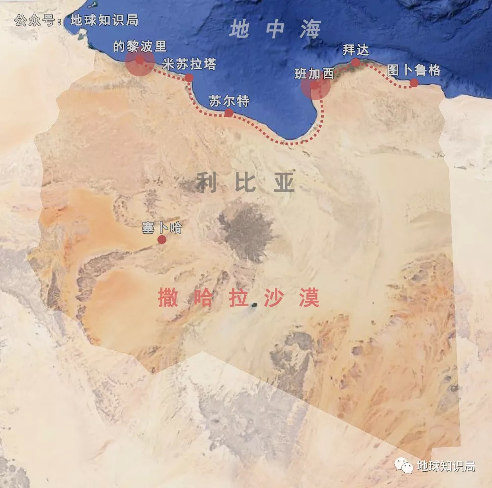 而这狭长的沿岸平原地区,又被苏尔特海湾分割为东西两个独立的地理单元,位于西北的首都的黎波里的影响力很难覆盖到东部的班加西、图卜鲁格等城市。