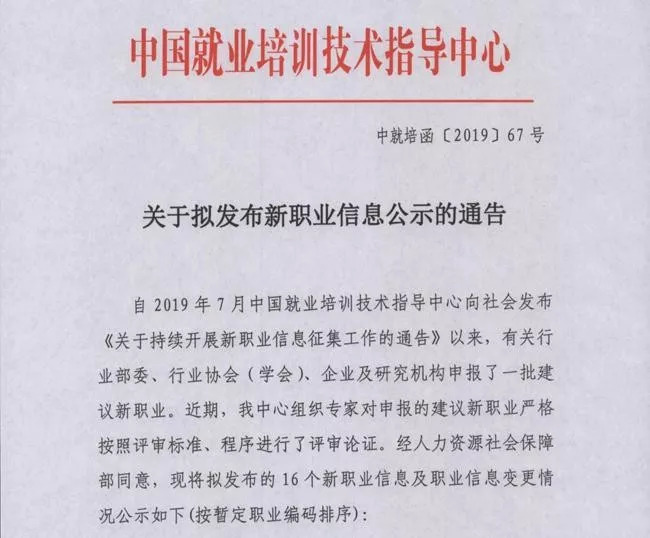 如果顺利的话,这些职业即将在春节前后正式发布。