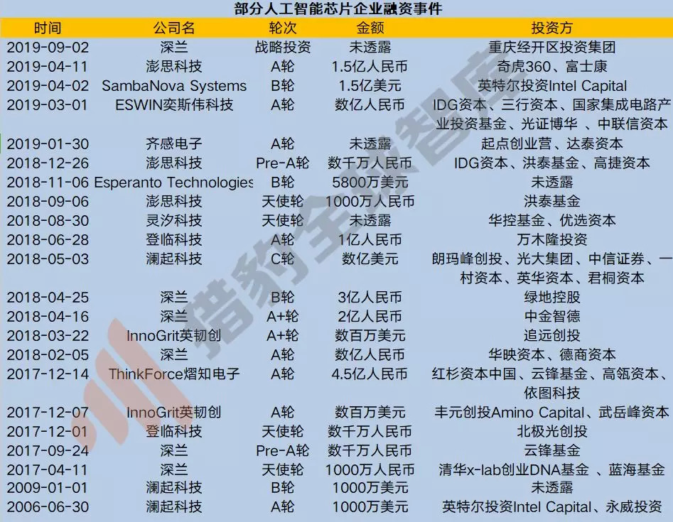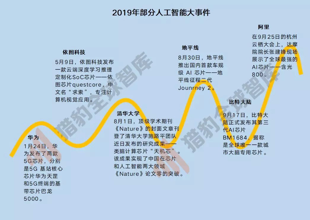 2019年对于人工智能芯片是重要的落地年,猎豹全球智库整理了一下今年国内比较有代表性的事件: