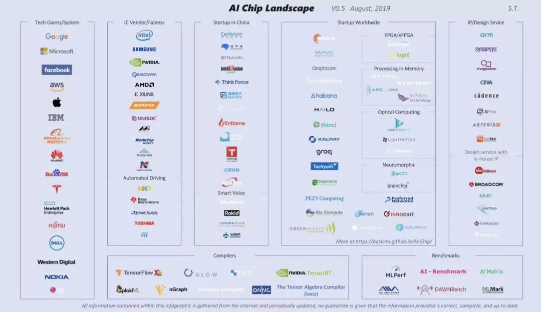在全球AI的芯片版图上,除了包括英伟达、英特尔、高通在内传统的集成电路供应商,芯片创业公司,华为、谷歌、亚马逊、微软、苹果在内的科技巨头一跃而起。