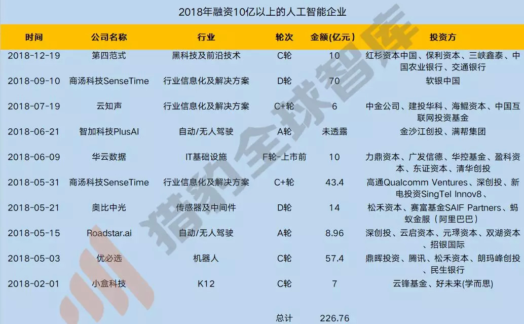 5、人工智能行业融资龙虎榜:商汤科技9次融资位列榜首