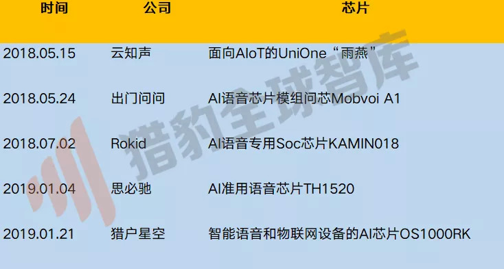 例如猎户星空联合瑞芯微电子发布了专门针对智能语音和物联网设备的 AI 芯片OS1000RK,此外出门问问、Rokid也加入了语音芯片研发行列。