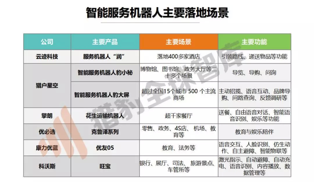 以猎户星空智能服务机器人“豹大屏”为例,通过主动招揽、语音互动、品牌导购、问路查询、反馈调研等功能,满足商户和品牌的营销需求,目前,已覆盖超过15个城市,500个主流商场,累计服务人次超8000 万。