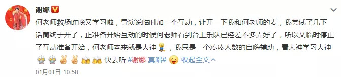 对于这些扑面而来的争议,谢娜回应说:是导演临时要加一个互动,我就是试试话筒,一个凑人数的自嗨辅助,看大神学习大神。