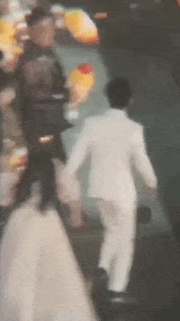 动图中,何炅小跑着去拥抱了谢娜。