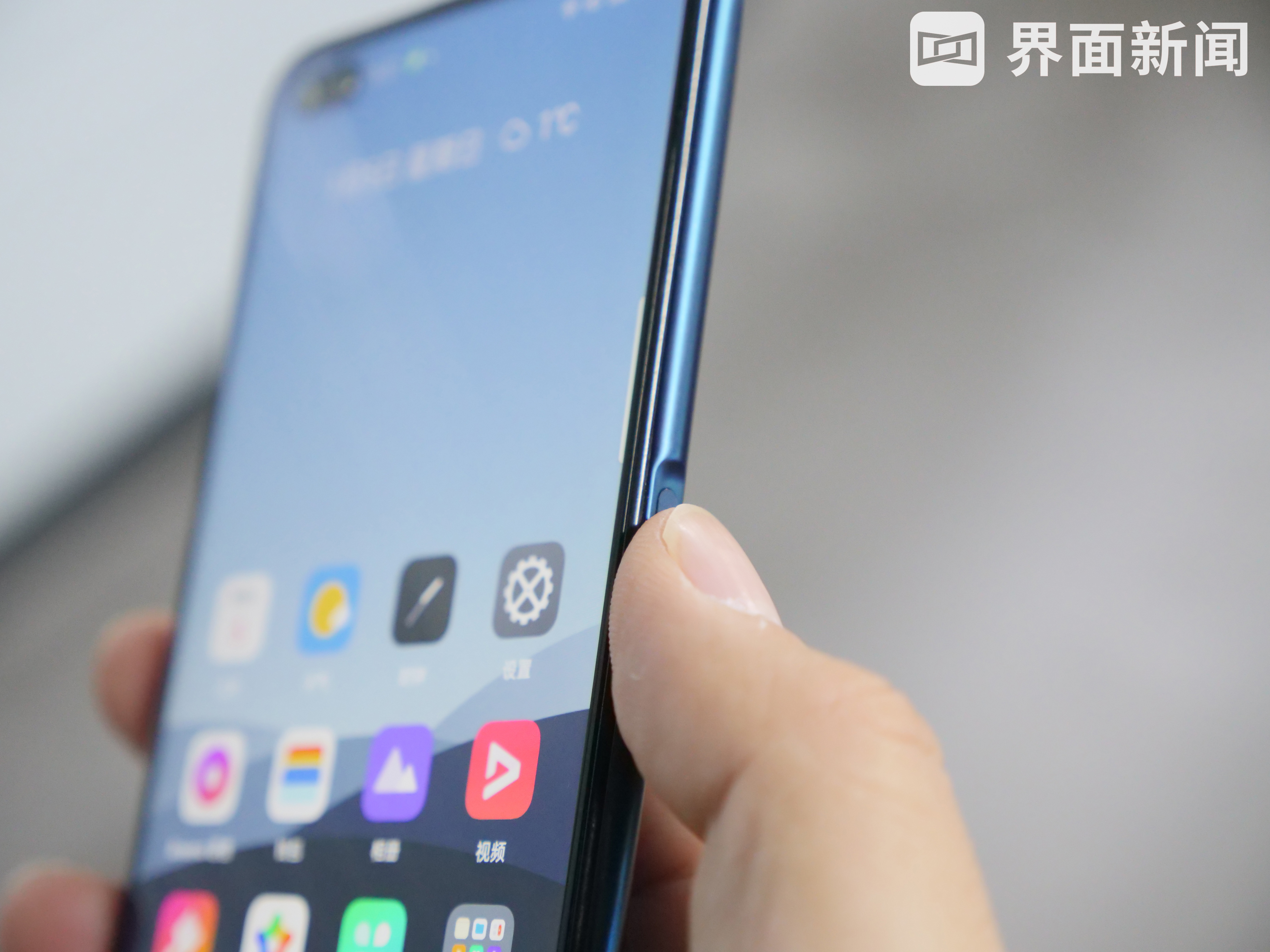 不过,realme X50 5G并没有采用屏下指纹,选择了并不常见的侧边指纹解锁。