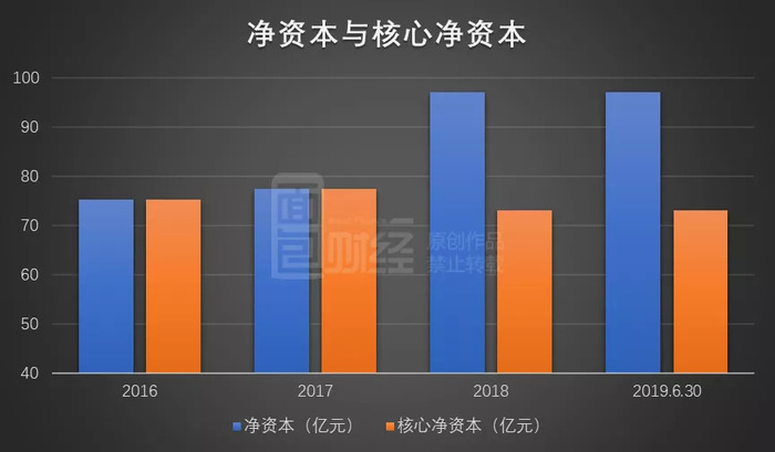 2018年,财达证券发行了两期期限为3年的次级债券,共计40亿元。按照相关规定,长期次级债可按一定比例计入净资本。在发行完次级债券后,公司净资本出现明显增长,截至2019年6月末,净资本为97.03亿元。