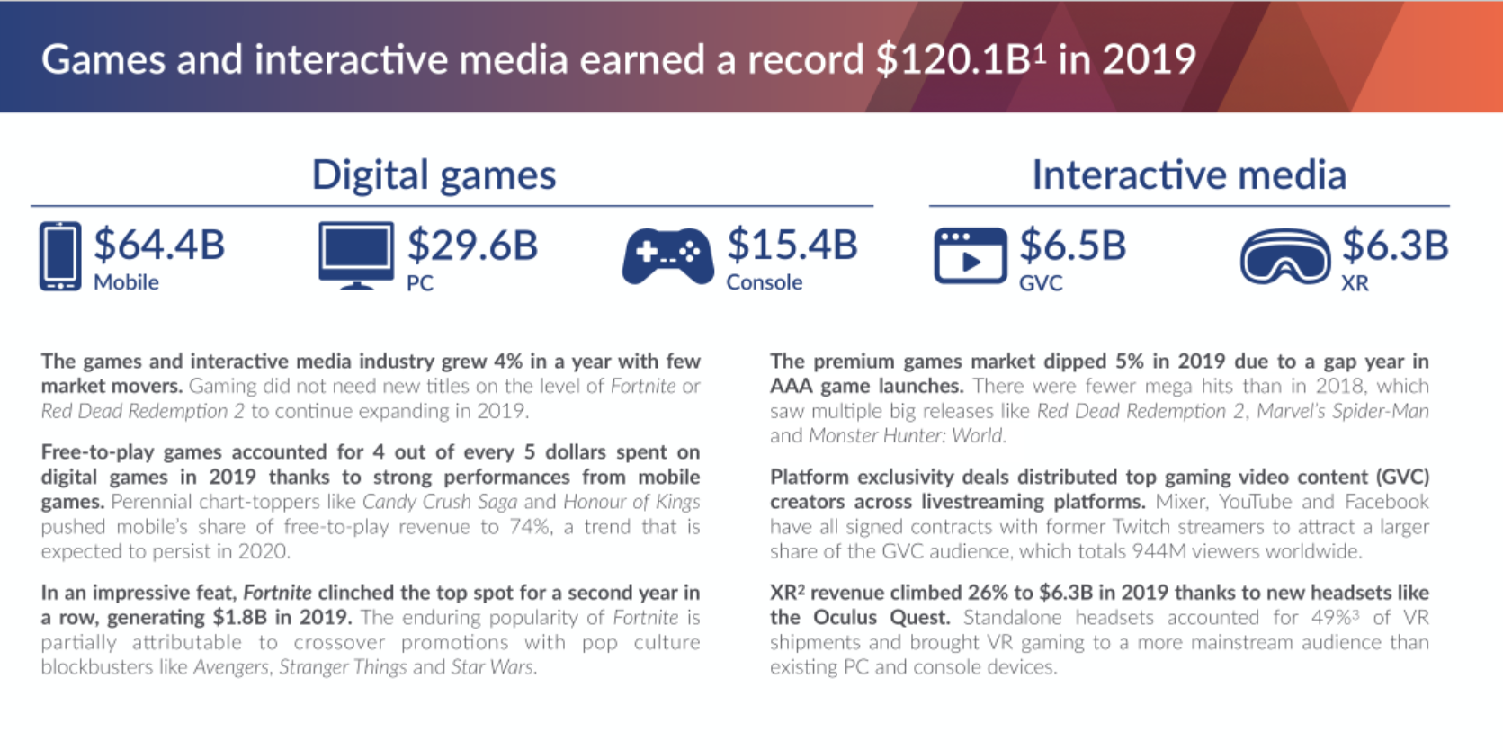 SuperData预计,2020年该行业规模可以再增长4%至1248亿美元。