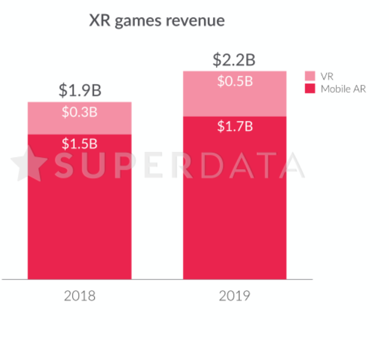 至于AR游戏,推出于2016年的《精灵宝可梦GO》仍然牢牢占领着这一市场,收入达到14亿美元,占总标题市场份额的82%。2019年推出了多款AR类手游,如《哈利波特:巫师联盟》和《我的世界:地球》,他们对市场的影响仍需要观察。