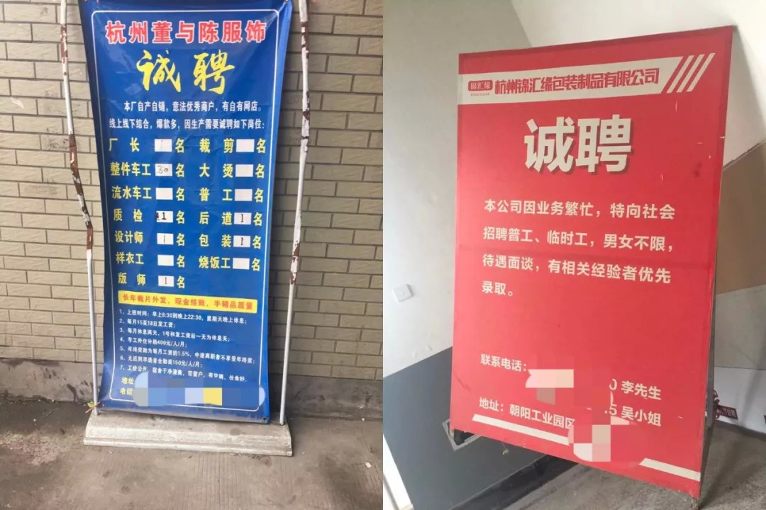 为了寻求速度,如涵的直播基地就设在了朝阳工业园。进入朝阳工业园门口,到处贴满了促销、招工的标志。与此同时,九堡离其他供应链聚集地,如桐乡、嘉兴、海宁也就一两个小时。