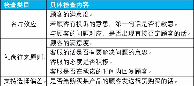 总而言之,售后客服在解决顾客提出的问题时,首先要运用“名片效应”心理,让自己和顾客尽量保持一致,做法就是先对顾客的问题表示认同,如果顾客要投诉的话,首先就是要表示歉意,特别要注意的是,不要出现直接否定顾客的话。其次,在发现问题之后,运用“礼尚往来”原则,要有积极解决问题的态度,并给出承诺。最后,运用“支持选择偏差”原则,顾客完成购买行为后没有问题了,要记得给购买某产品的顾客发送祝贺购买的话语,这些方法都有提高顾客的复购率。小编整理之后,得到的内容如下表所示: