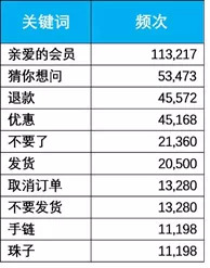 19年的“双十一”“双十二”已经过去了,各家都在公布战绩,总体销售额再创新高。然而,与此同时,与高销售额相对应的,“后双十一双十二”时间里的退款退货需求仍在节节攀升。根据我们系统的后台显示,“退款”、“不要了”、“取消订单”、“不要发货”这些关键词就排在所有服务店铺的关键词触发频次TOP10之列。