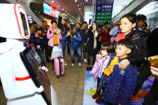 ——率先使用机器人导航。“小璐,请问厕所在哪里!”“前方300米右转……”如果你在广州南站,找厕所、找餐厅,问机器人小璐,她可精准回答。