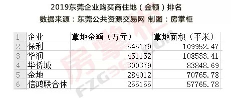 2019全年,东莞拿地金额排名前五的“地主”中,有三名为深圳房企,分别是华润置地、华侨城集团和金地集团。